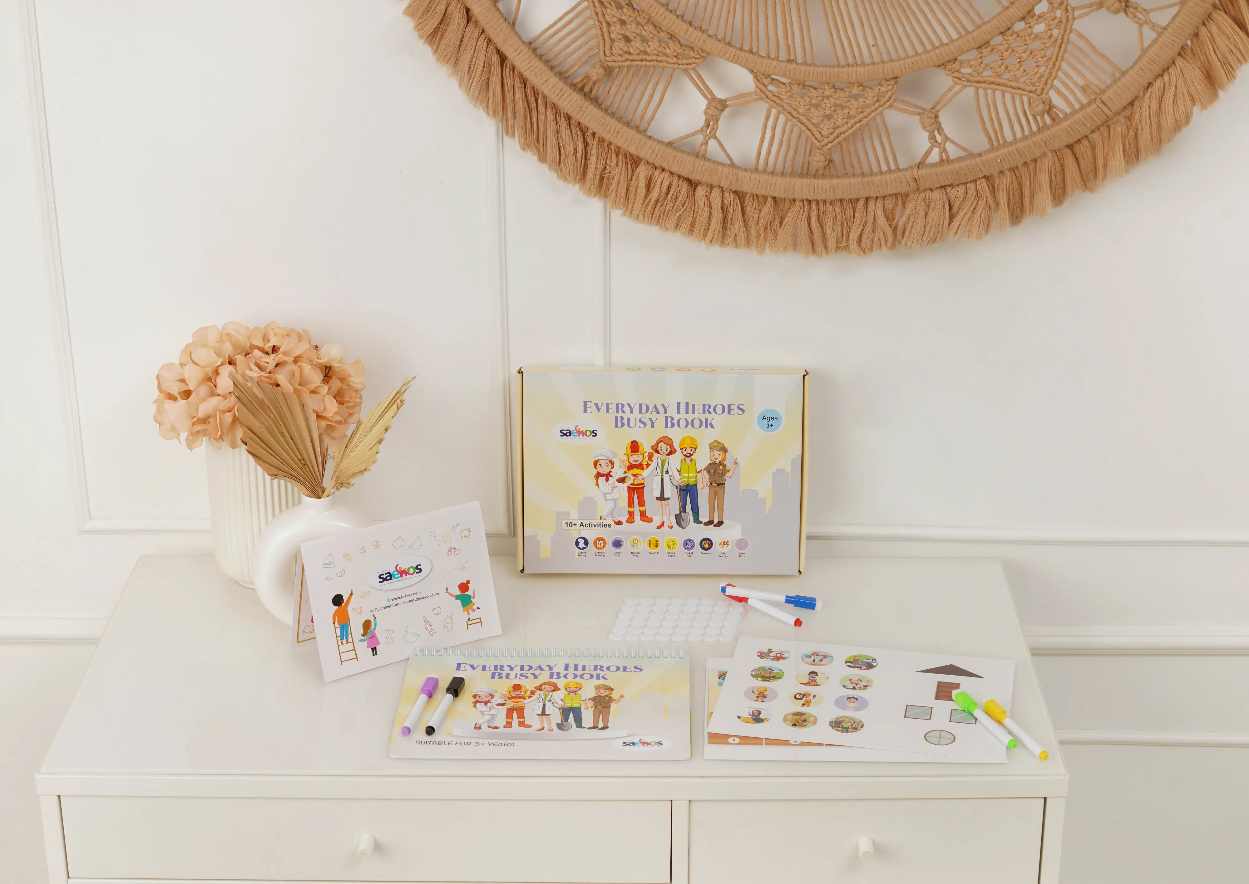 Inspire curiosity and life skills with the Saekos Everyday Heroes Busy Book. Montessori-inspired and screen-free, it teaches toddlers and preschoolers (ages 3–5) about firefighters, doctors, police, chefs, and community helpers through tracing, colouring, matching, and role-play activities. Boost kindness, teamwork, responsibility, and fine motor skills. Perfect for gifting!